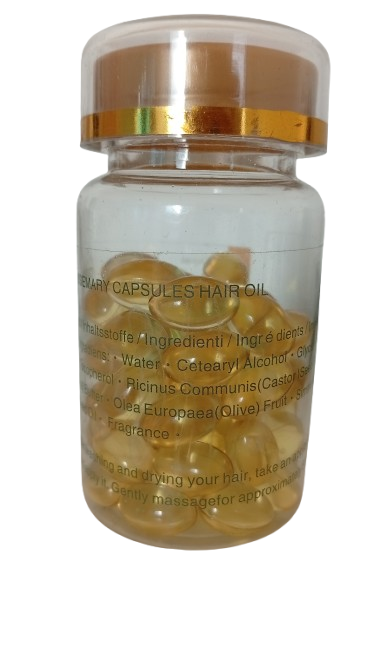 Neem een capsule, trek het een beetje open en smeer de olie op je schedel en in je haar. Goed inmasseren.